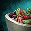 Gourmet-Schmaus: Doppelklicken, um allen in der Nähe Schüsseln mit Fruchtsalat mit Koriander-Beilage zu servieren. Schmaus bleibt für fünf Minuten aktiv.