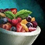 Schüssel mit Fruchtsalat mit Minz-Beilage